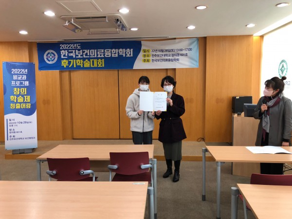 축! 보건행정학과 4학년 학생 2022년도 한국보건의료융합학회 후기학술대회 우수논문상 수상!!