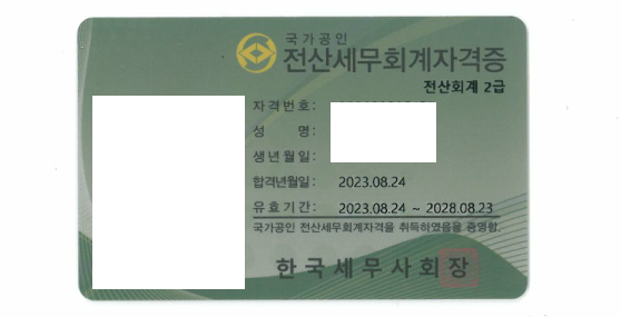 1학년 재학생 손*민 학생이 전산세무회계 2급에 합격 하였습니다.